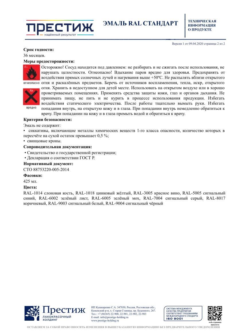 Высыхание: «на отлип» - 15 мин; полное высыхание - 30 мин.