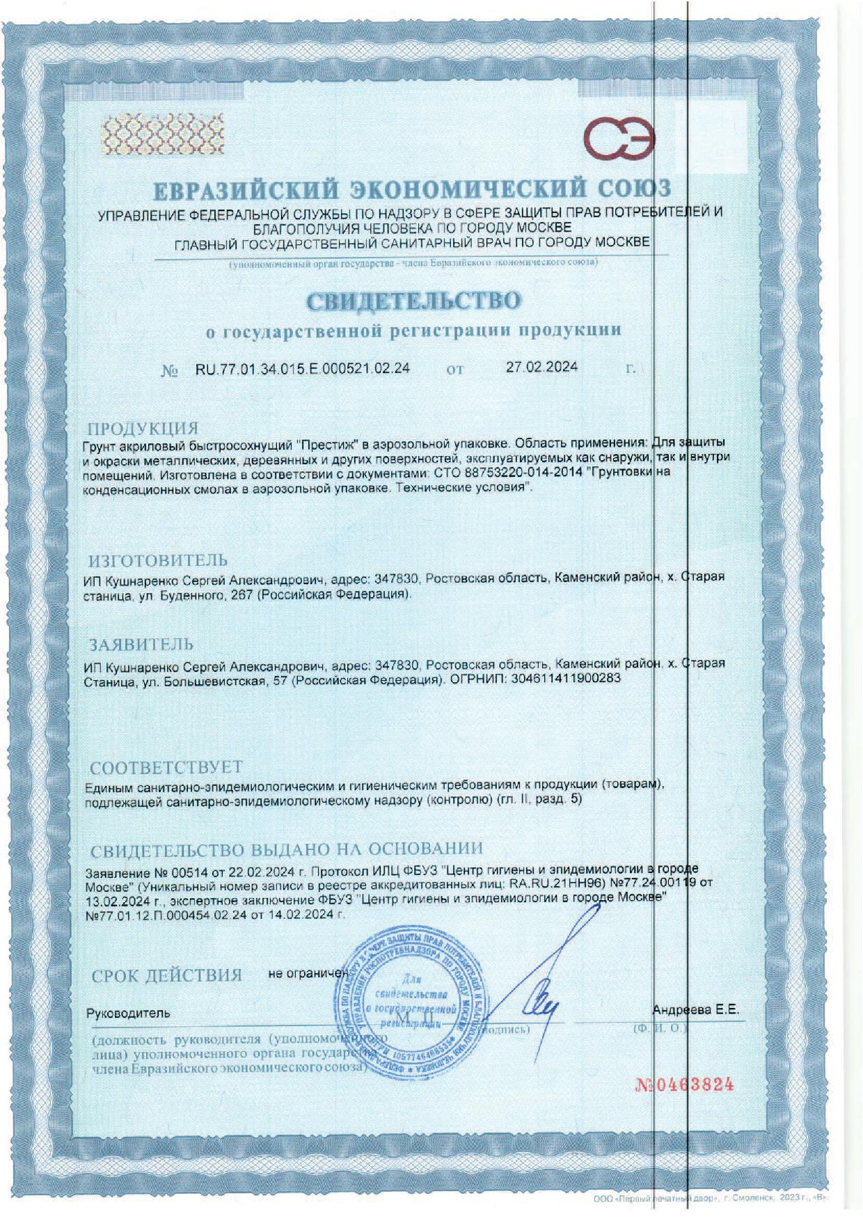 Аэрозольный грунт акриловый ПРЕСТИЖ белый 425мл