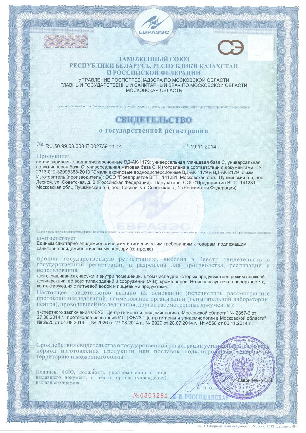 Эмаль ВГТ акриловая ВД-АК-1179 матовая супербелая база А 3кг