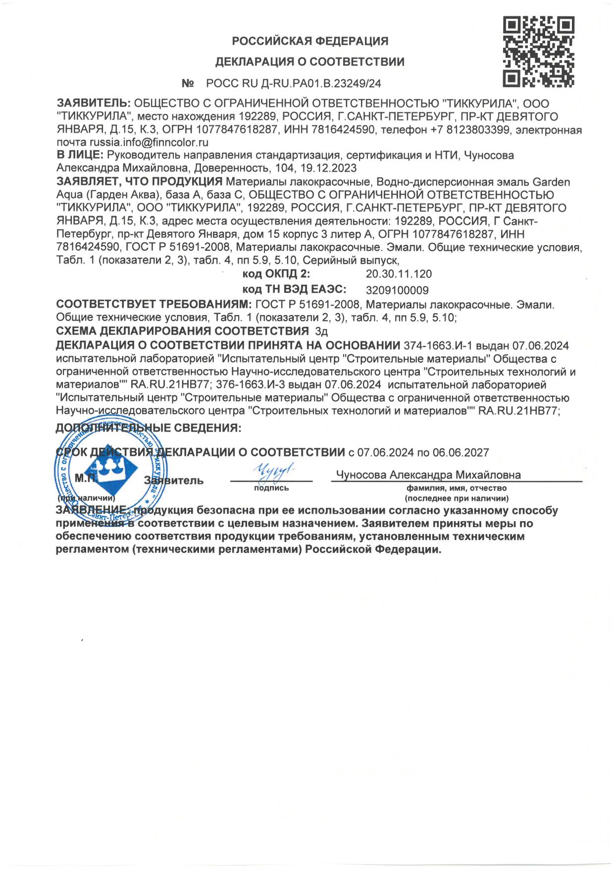 Эмаль акриловая FINNCOLOR GARDEN AQUA A 0,9л