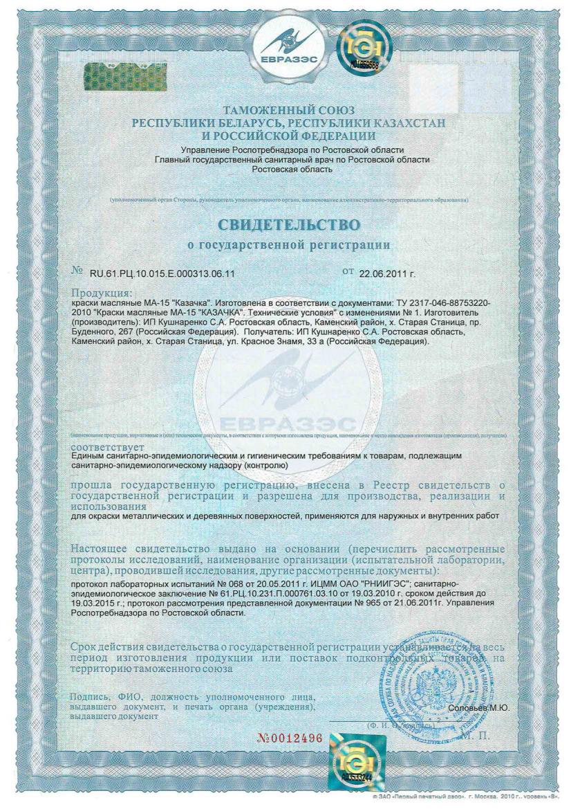 Краска масляная КАЗАЧКА МА-15 синяя 1,9кг