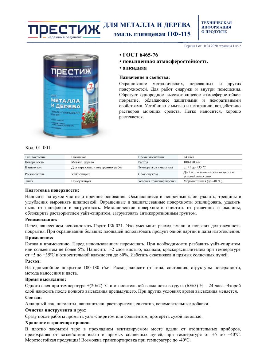 Назначение: качественная окраска металлических, деревянных и других поверхностей, эксплуатируемых в атмосферных условиях и внутри помещений.