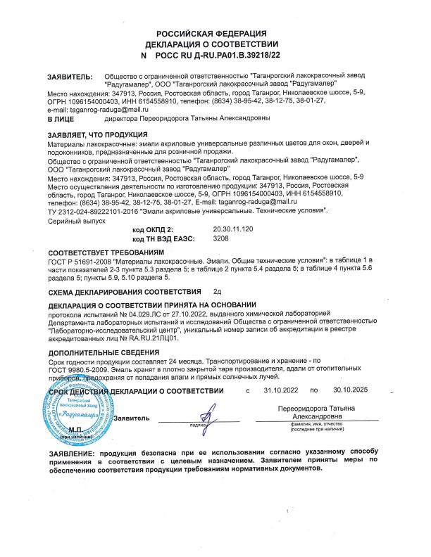 Эмаль РАДУГАМАЛЕР акриловая универсальная белая 1,9кг