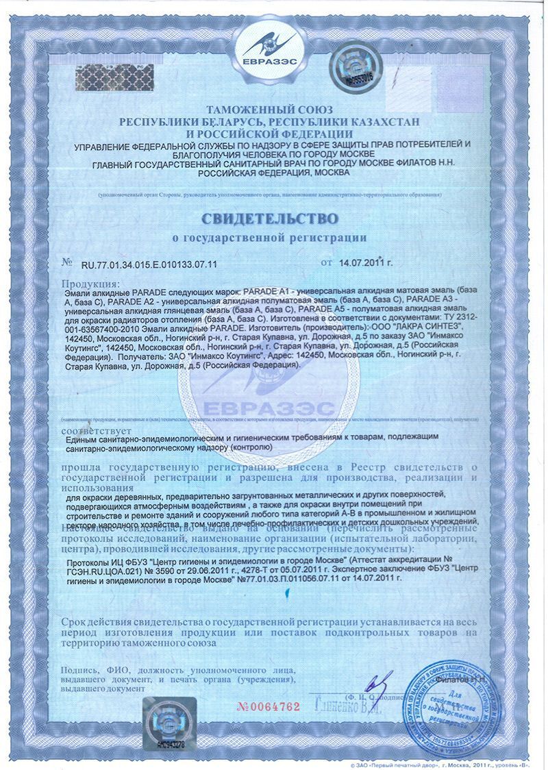 Сертифицирована для применения в детских и лечебных учреждениях |