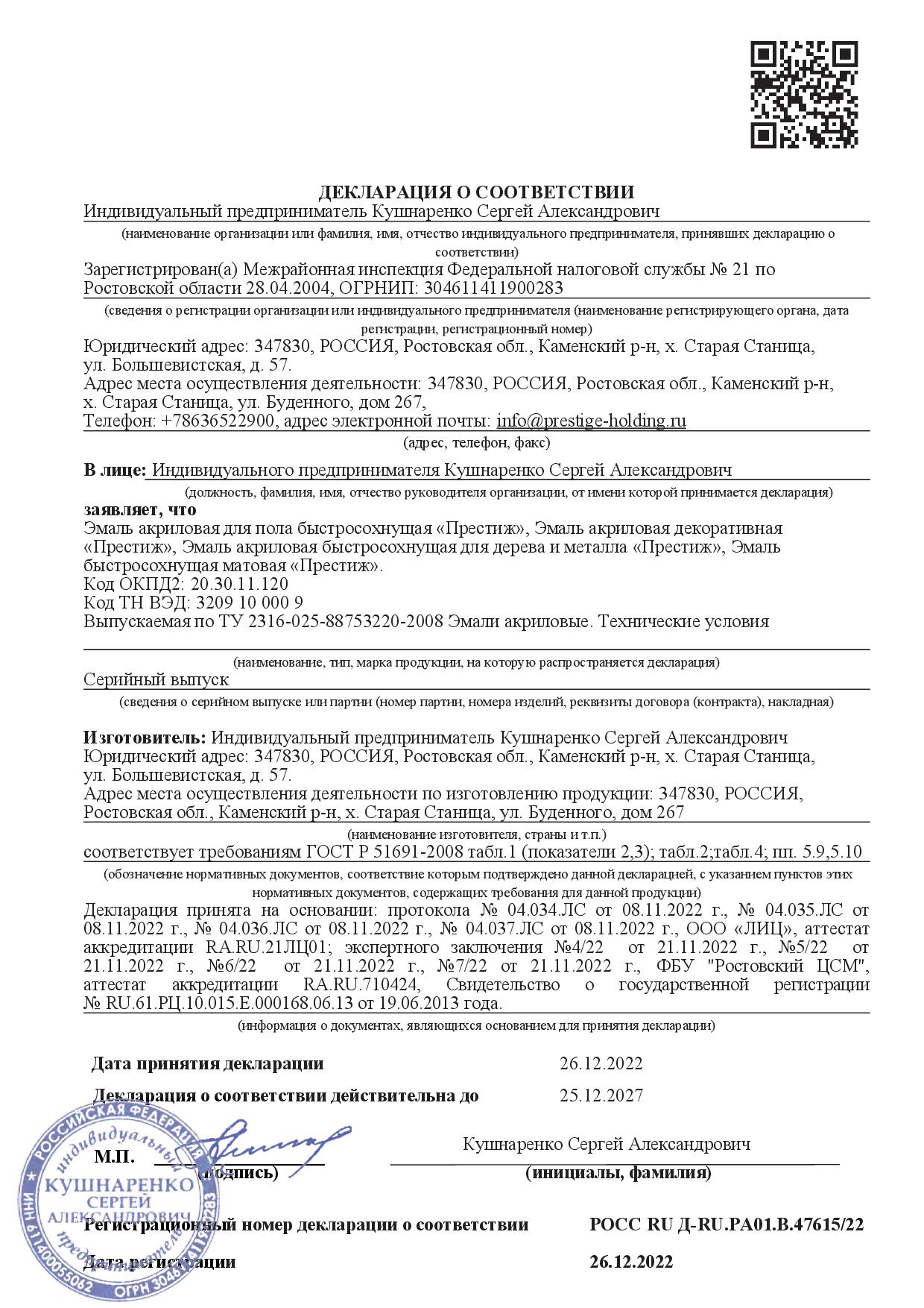 Перед использованием тщательно перемешать. При необходимости возможно разбавление водой (не более 10%). Расход на однослойной покрытие: 100–120 г/м². Для создания качественного покрытия рекомендуется двухслойное нанесение эмали.