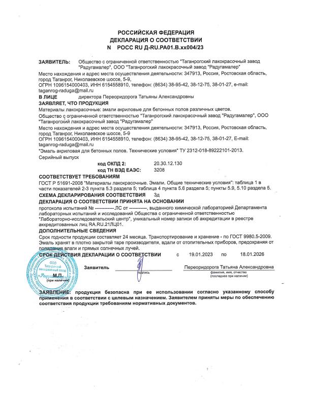Эмаль РАДУГАМАЛЕР акриловая для бетонных полов серая 3,5кг