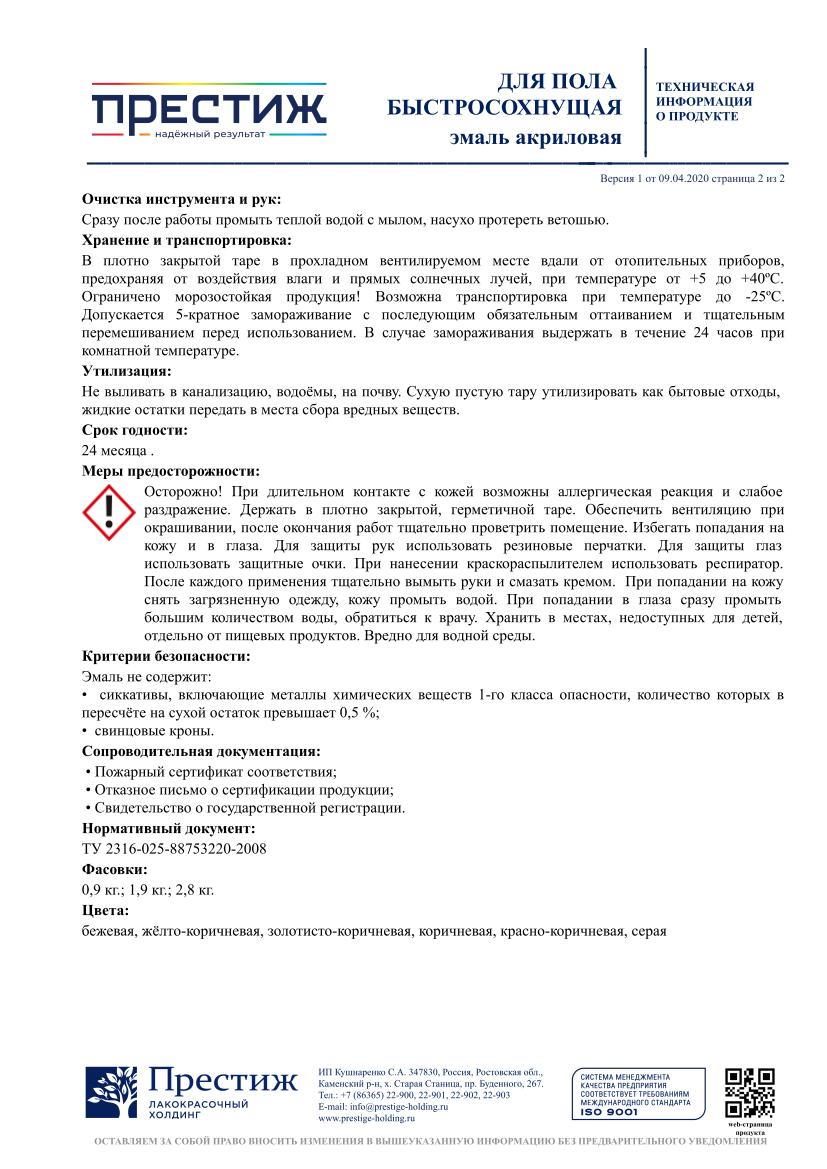Время высыхания: 1 час. Второй слой можно наносить через 2 часа. Поверхность готова к эксплуатации через 24 часа после нанесения последнего слоя.