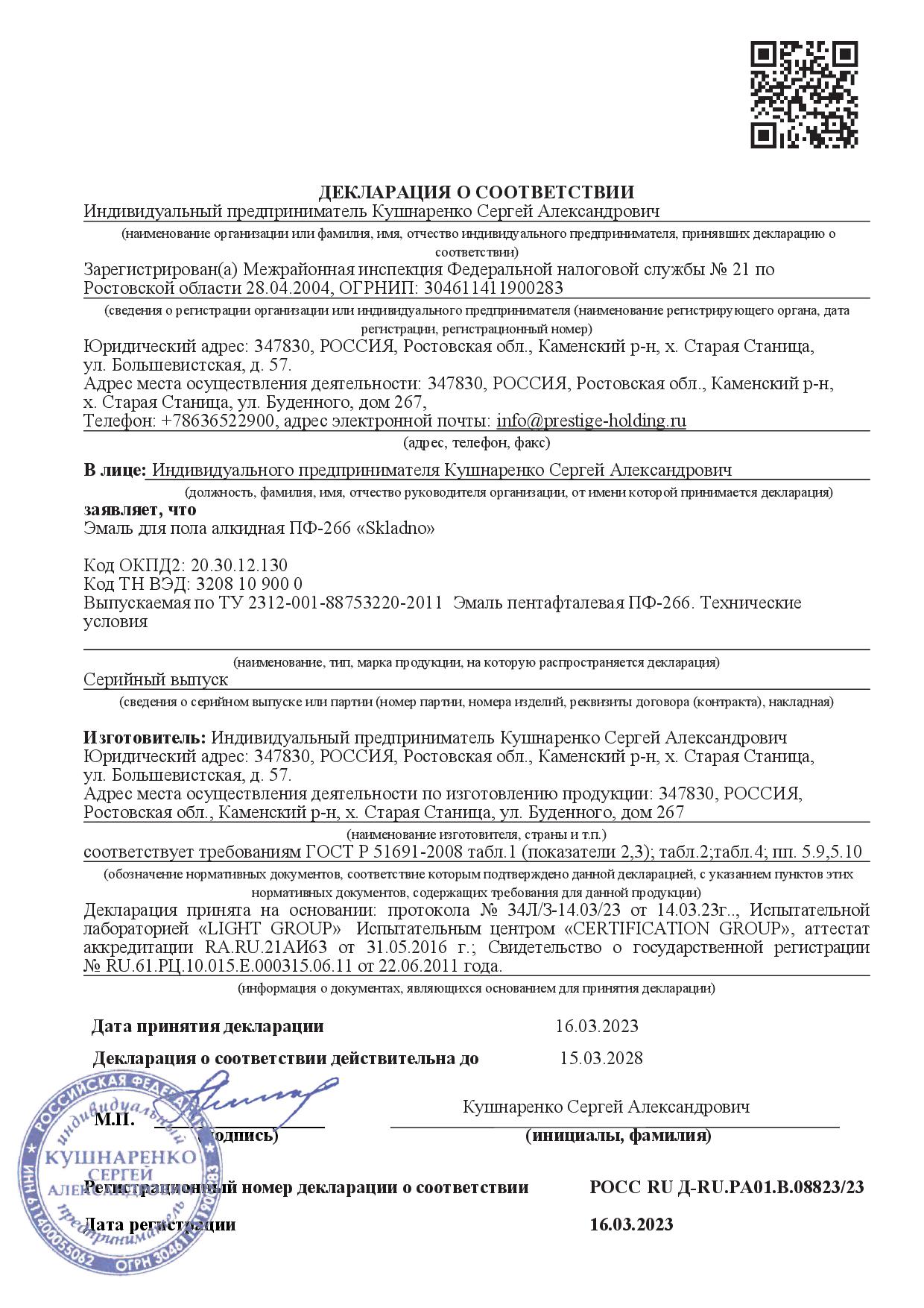 Эмаль SKLADNO ПФ-266 желто-коричневая 0,8кг