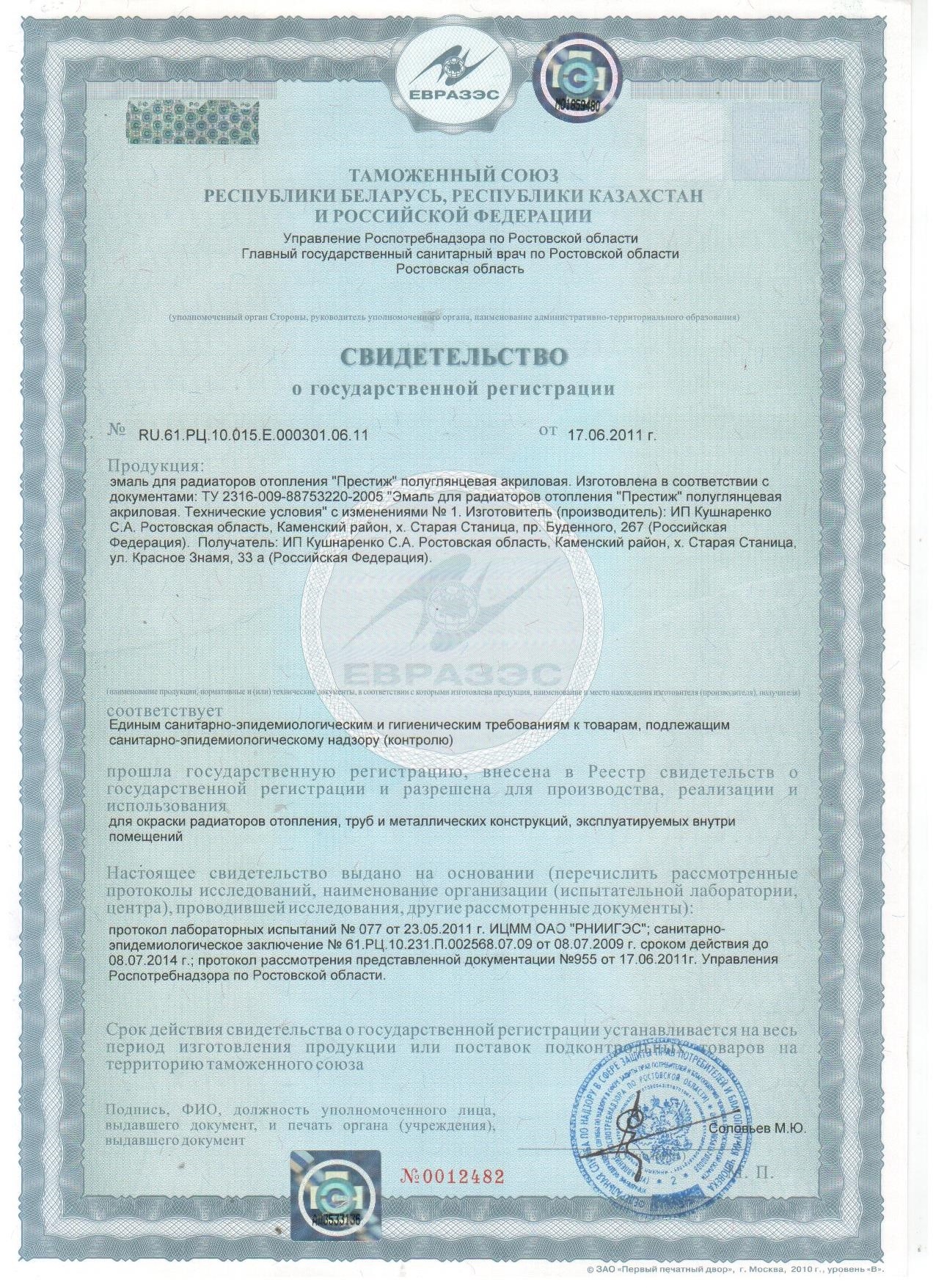 Свойства и особенности: легко наносится, быстро сохнет, экологически чистая, не имеет резкого запаха. После высыхания образует шелковистую полуглянцевую поверхность. Стойкая к мытью и истиранию. Не желтеет при воздействии температур до 100 ºС. Эмали можно придать оттенок, используя колеры, совместимые с водно-дисперсионными материалами.