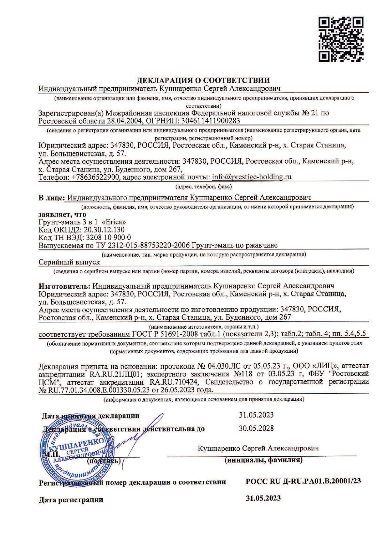 Грунт-эмаль 3 в 1 Erica красная 1,8 кг