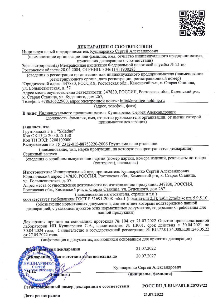 Грунт-эмаль по ржавчине SKLADNO серая 1,8кг