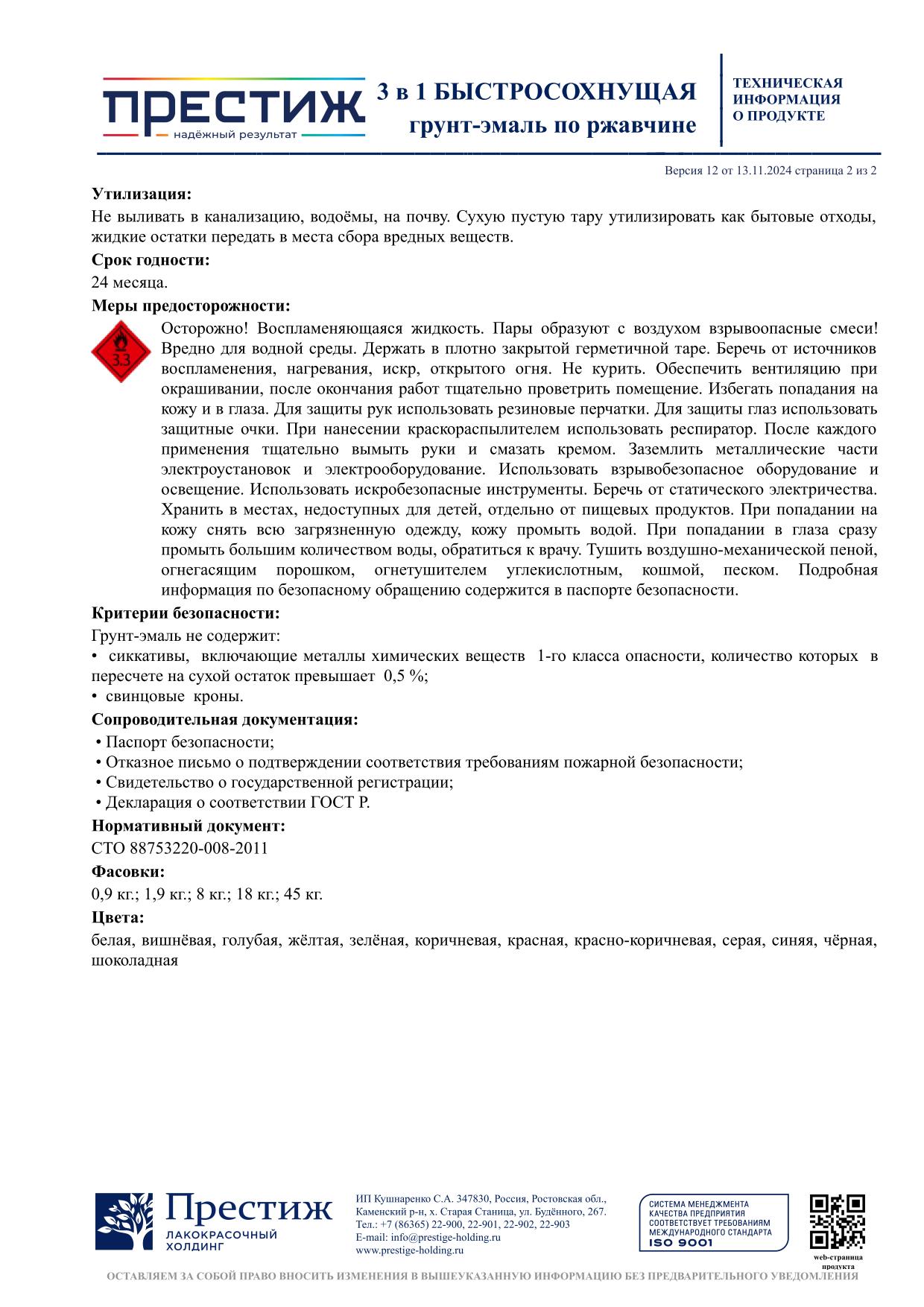 Добавить поверхностьСВОЙСТВА: после высыхания образует однородное гладкое покрытие, стойкое к мытью и истиранию, воздействию воды, растворов моющих средств, хлористого натрия. РАСТВОРИТЕЛЬ: ксилол (не более 5 % по массе)