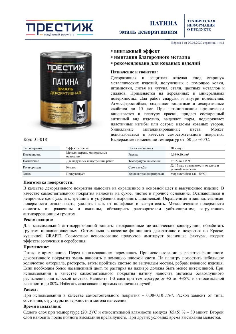 Добавить поверхностьСВОЙСТВА: сохраняет защитные и декоративные свойства до 15 лет. Патина органически вписывается в текстуру основной краски, подчеркивая пластичные изгибы или острые изломы кованых узоров ненавязчивым блеском тронутой временем бронзы, меди, серебра. Изделие сразу приобретает привлекательный вид; экономичнее, чем настоящее золочение или покрытие серебром. Патиной можно выделить поры, придать состаренный античный вид изделию, подчеркнуть контуры. Может применяться как самостоятельное покрытие по предварительно загрунтованным поверхностям.