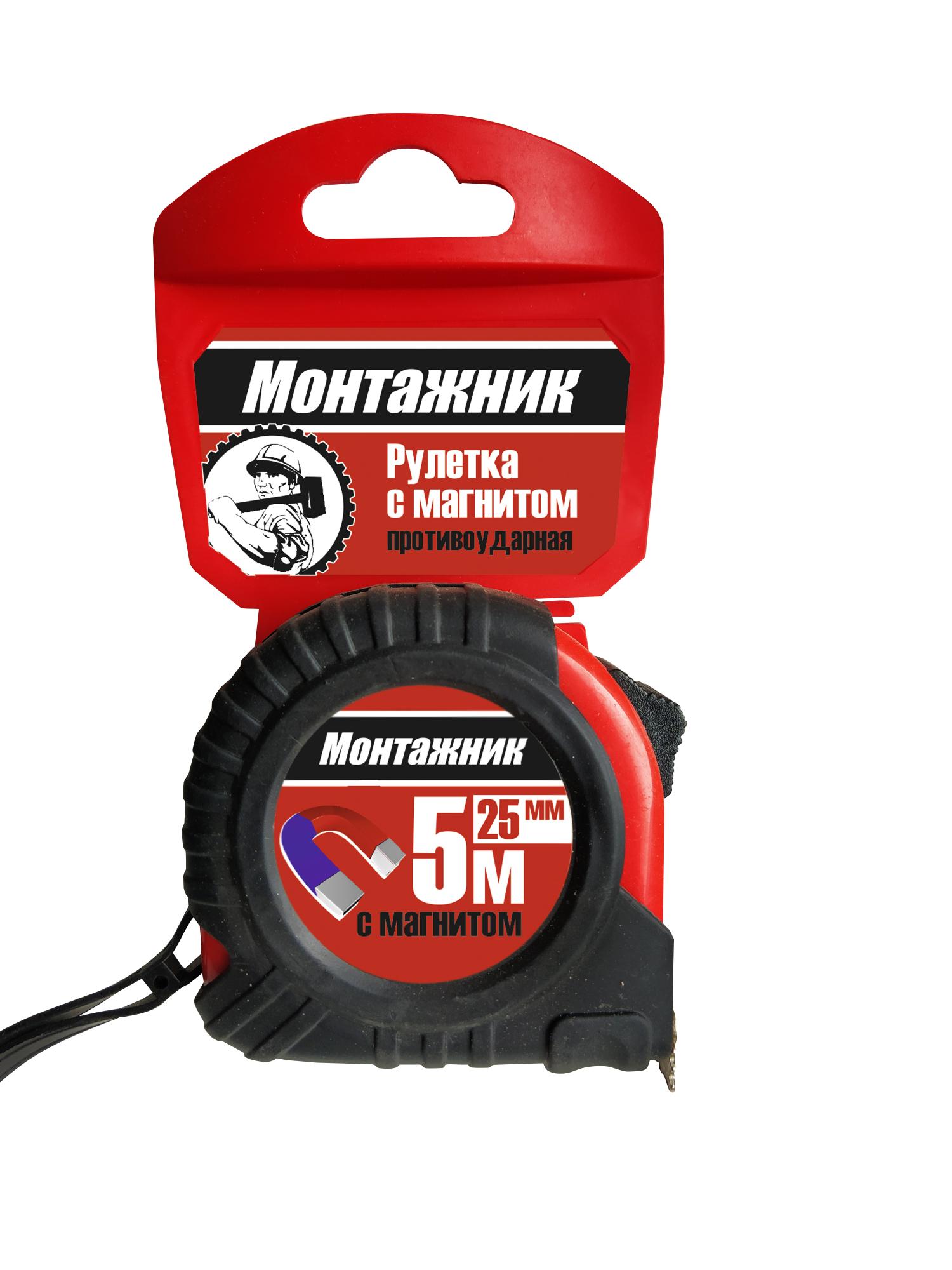 Рулетка с магнитом 5 м х 25 мм "Монтажник"
