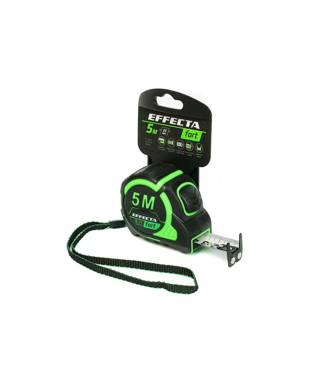 Рулетка Effecta Fort 5м/25мм, магнит, автостоп, лента-2сторонняя шкала нейлон