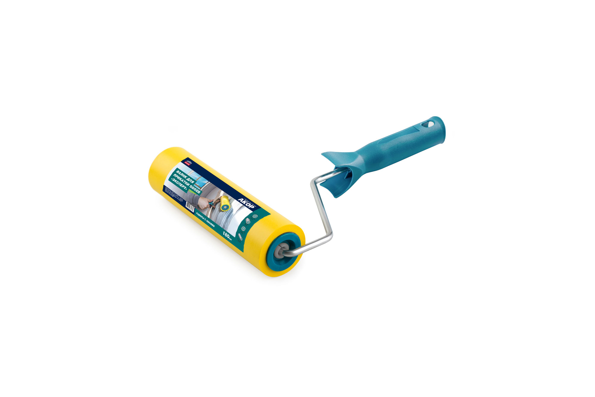 Валик для прикатки обоев резиновый 80 мм Эксперт, бюгель d 6 мм "Акор"