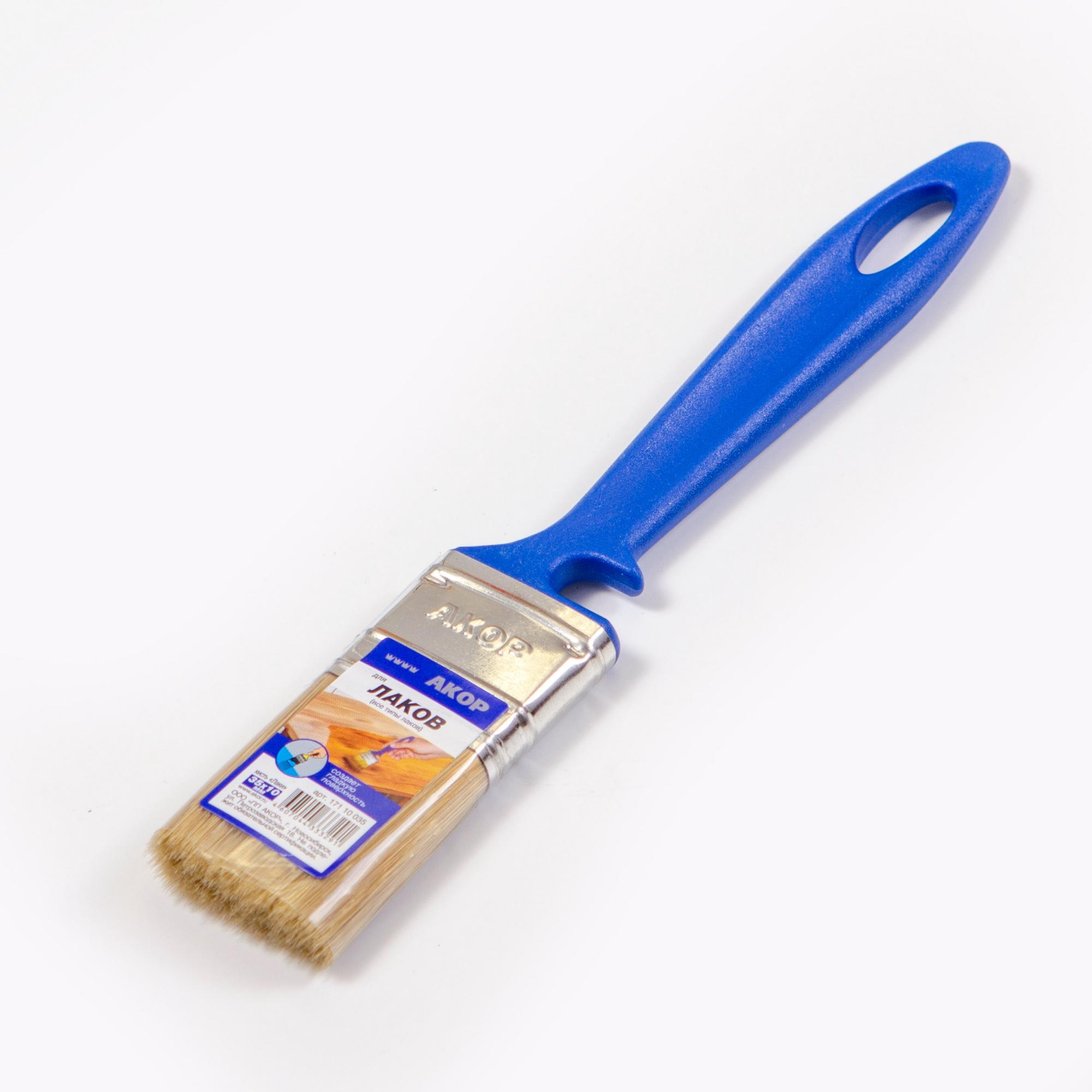 Кисть АКОР "Лаки" 35*10 пластиковая синяя ручка, синтетическая щетина