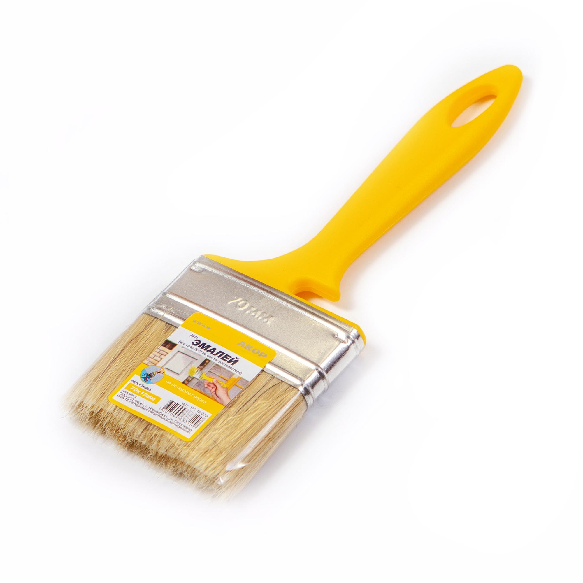 Кисть АКОР "Эмаль" 70*12 пластиковая желтая ручка, натуральная щетина