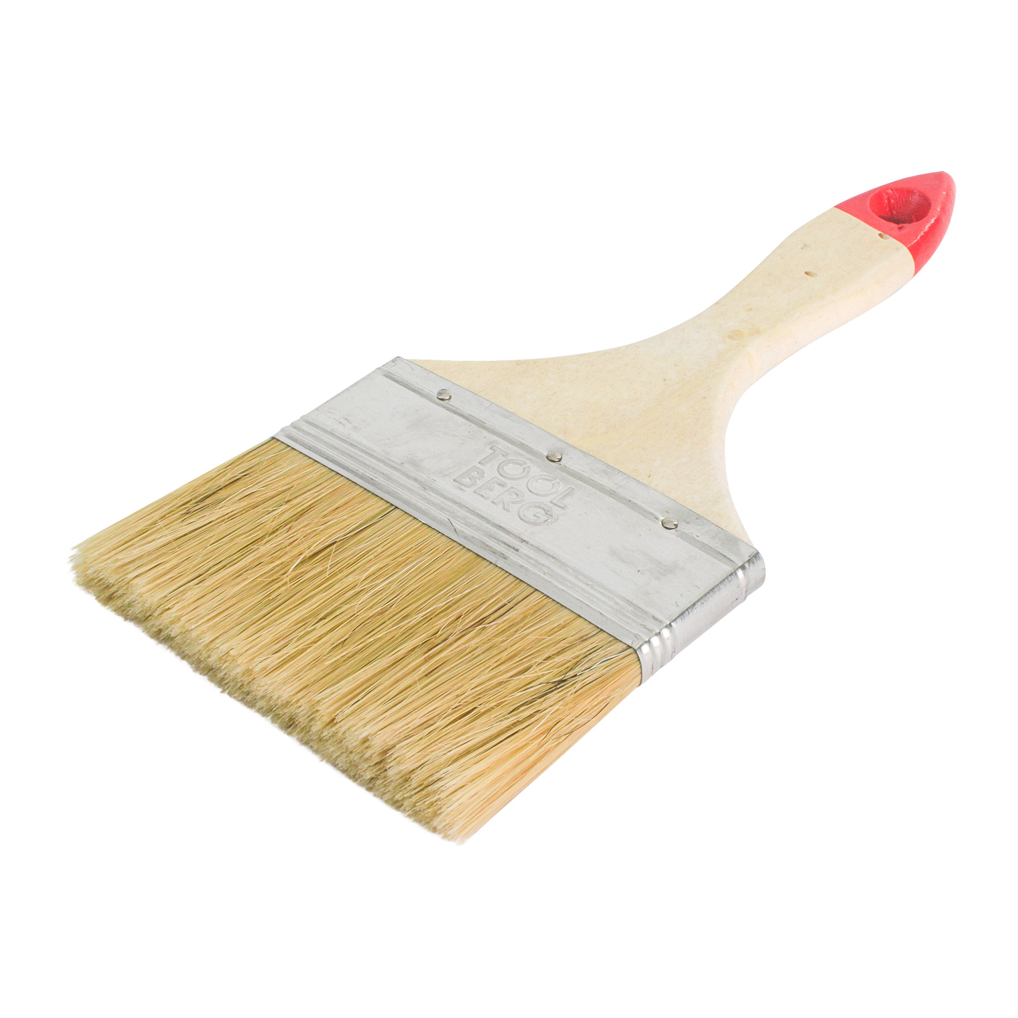 Кисть плоская Классик-Стандарт 4" 100мм натуральная светлая щетина, деревяная ручка "TOOLBERG"