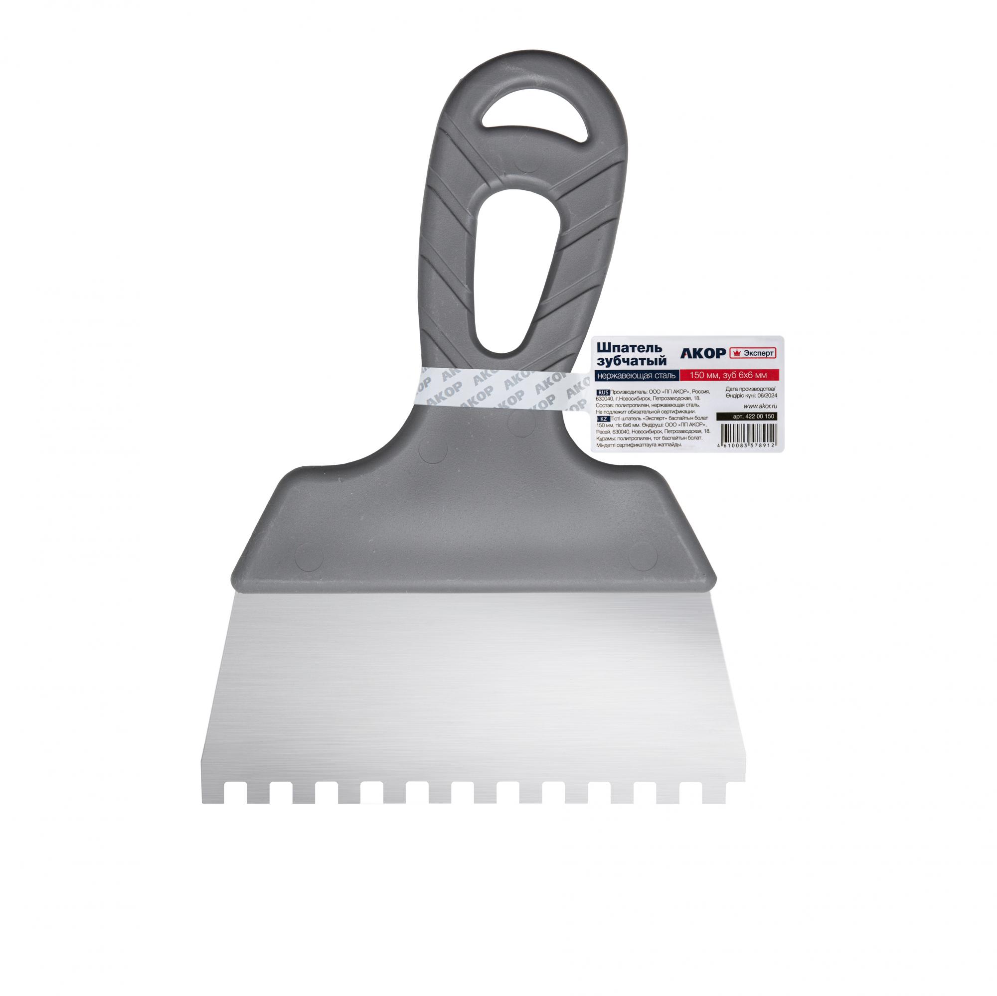Шпатель зубчатый «Эксперт» из нержавеющей стали 150мм, 6х6мм