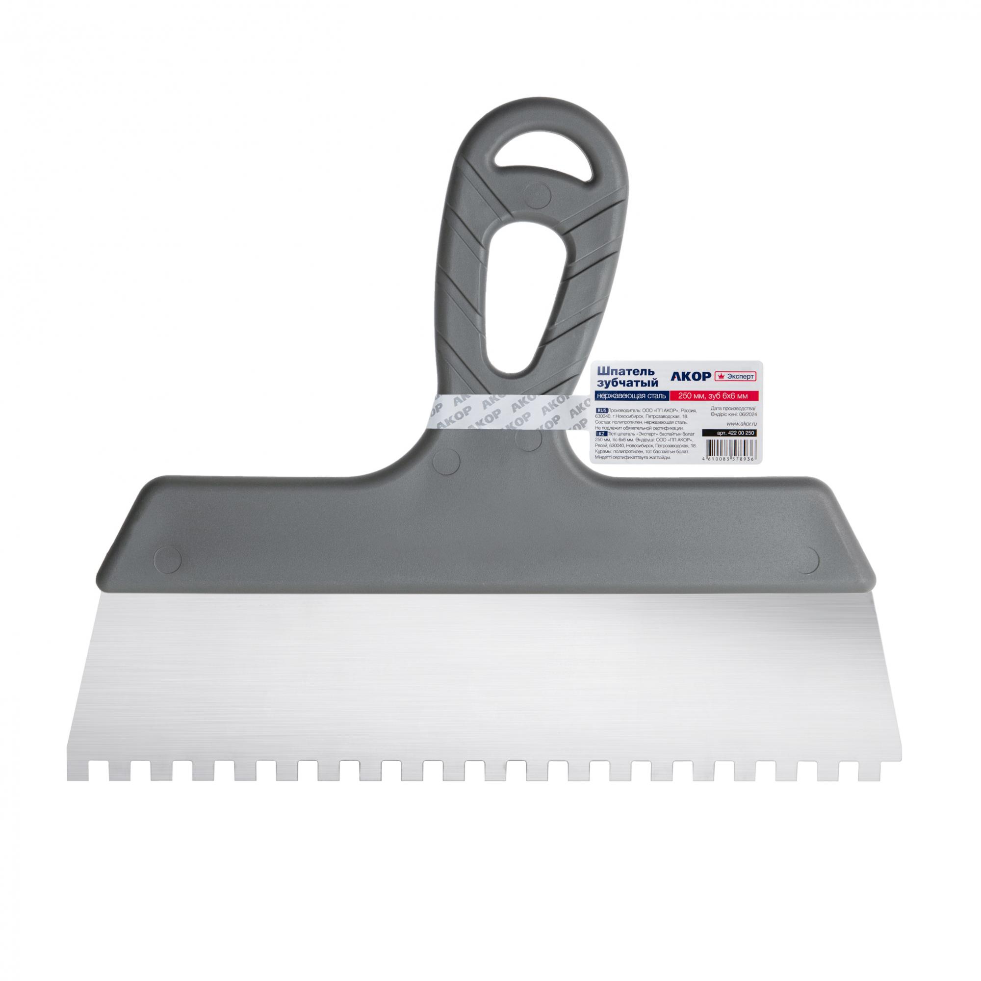 Шпатель зубчатый «Эксперт» из нержавеющей стали 250мм, 6х6мм