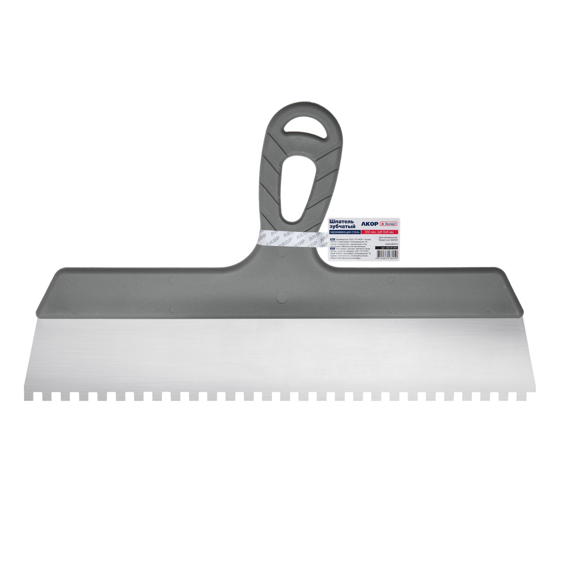Шпатель зубчатый «Эксперт» из нержавеющей стали 350мм, 6х6мм