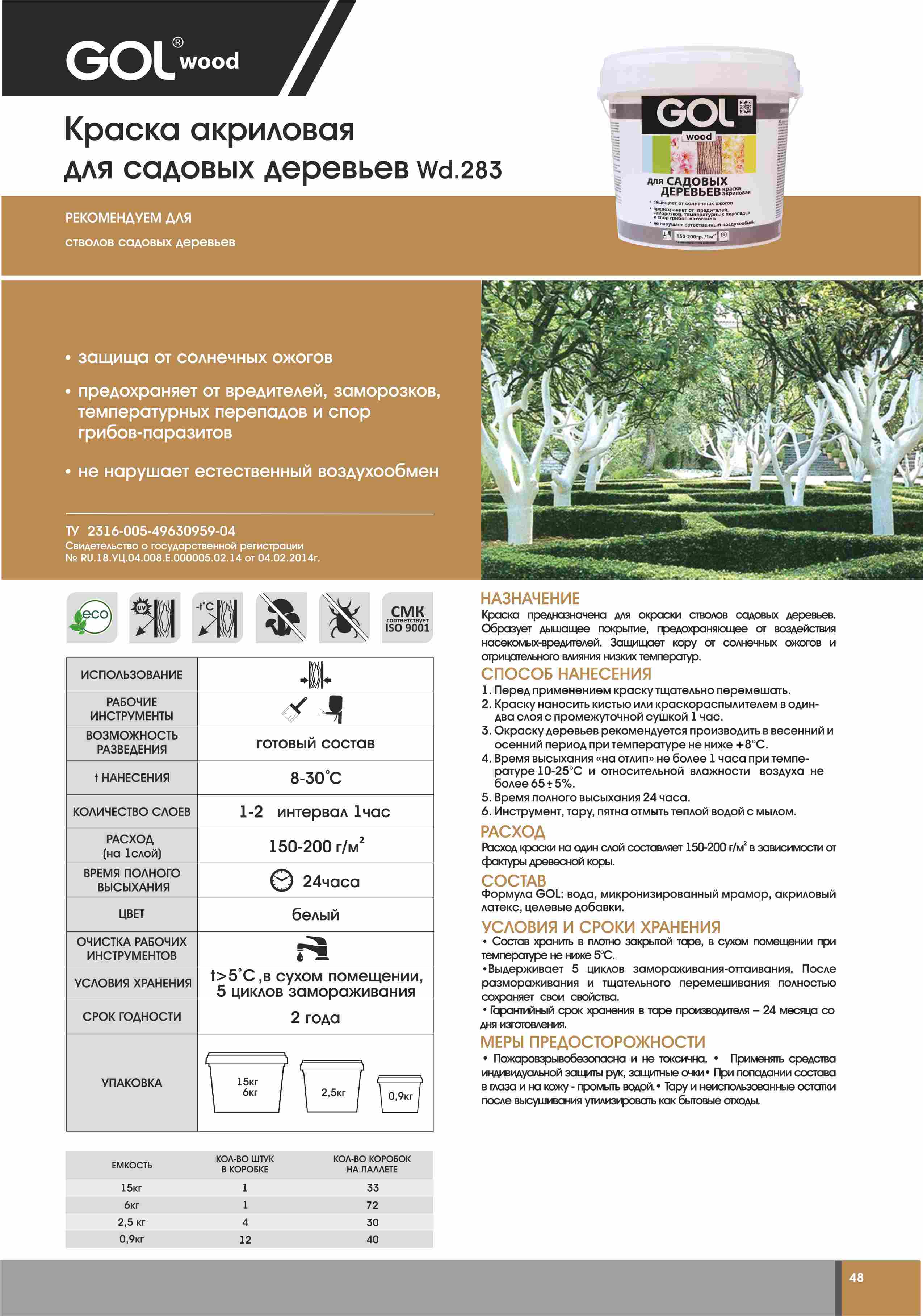 Краска акриловая для садовых деревьев GOLwood 3 кг