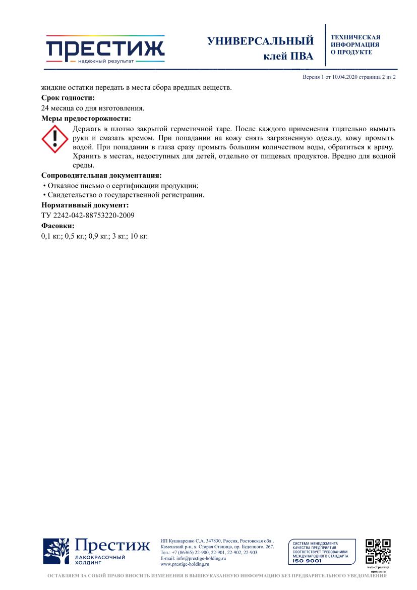 Клей ПВА универсальный ПРЕСТИЖ 3кг