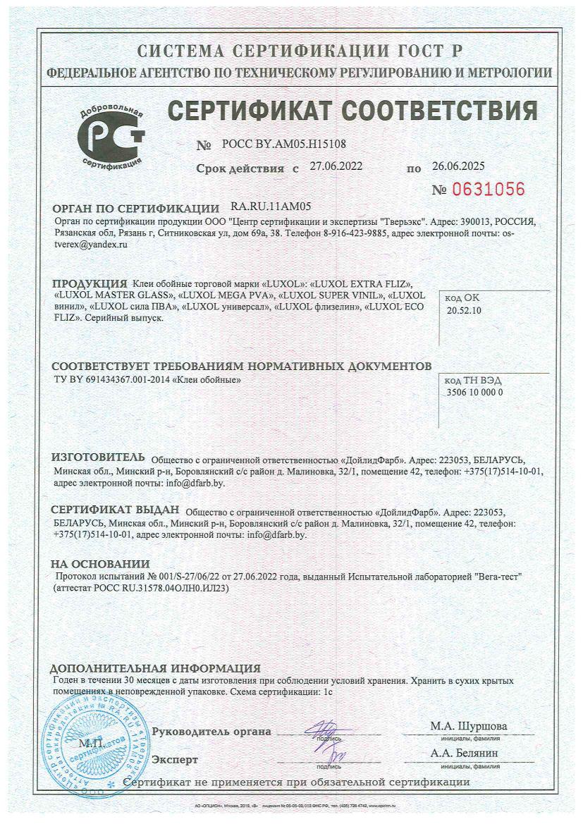 Клей обойный «LUXOL MEGA PVA» (Professional) 500 г, коробка