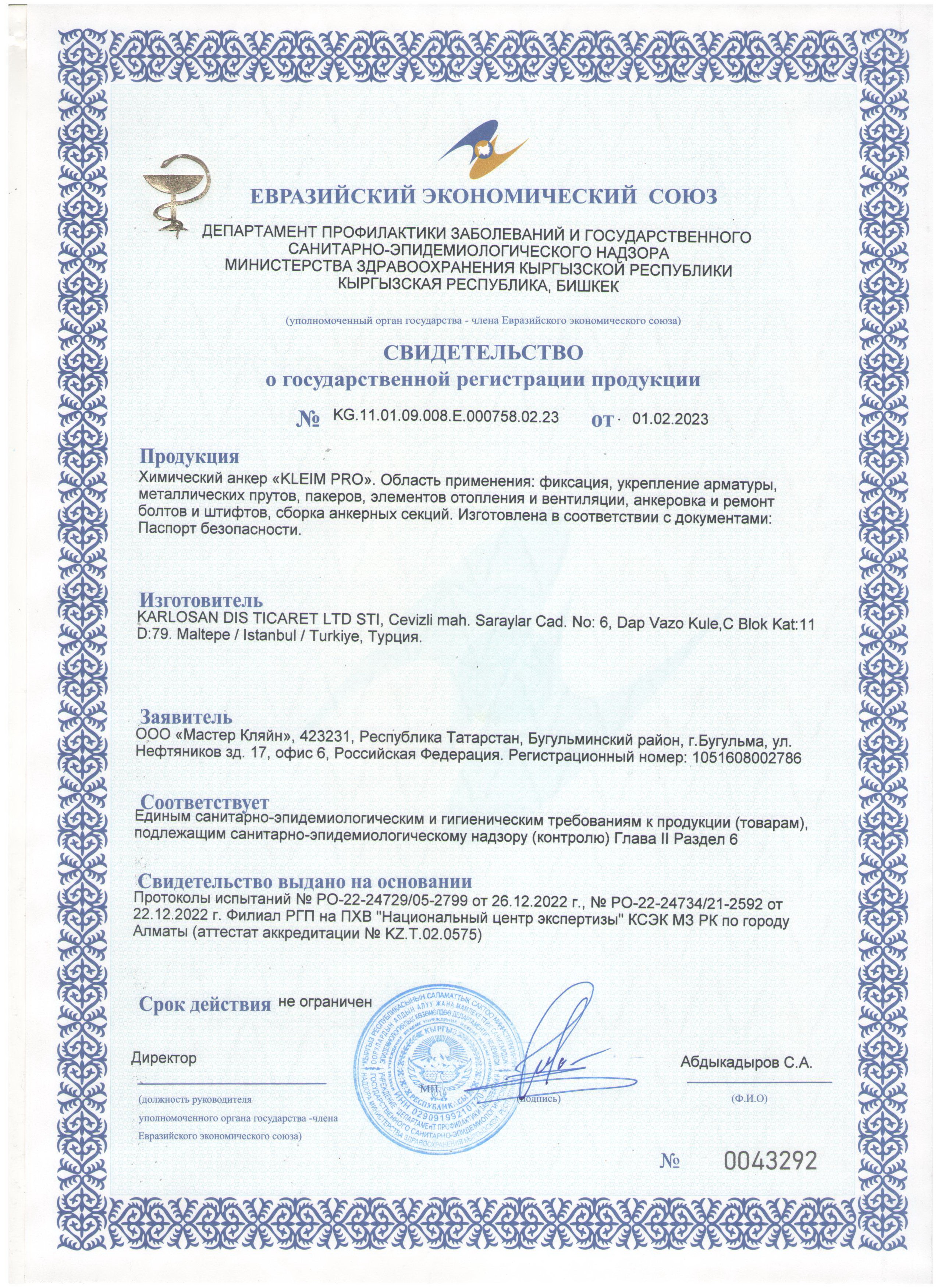 Химический анкер Kleim Pro 280мл на основе полиэстера, 345 мл картридж
