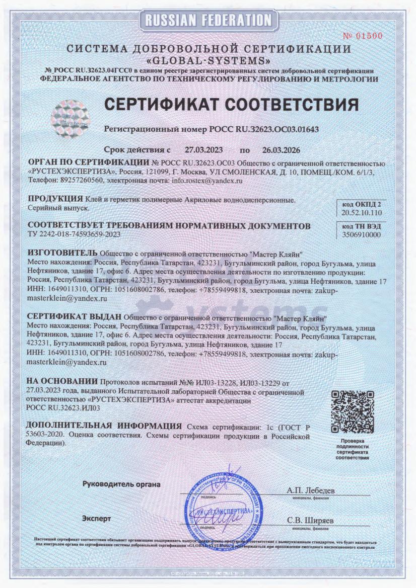 Жидкие гвозди Master Klein акриловые универсальные 375г/310мл
