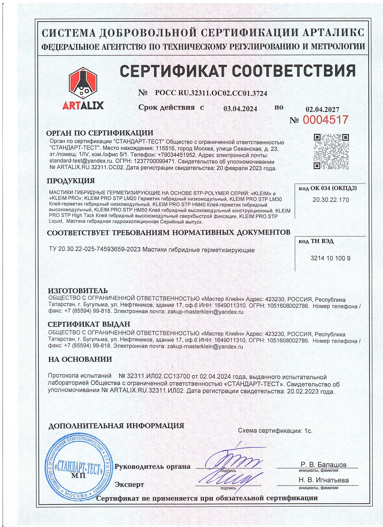 Клей гибридный полимерный Kleim Pro HIGH TACK, 280мл белый