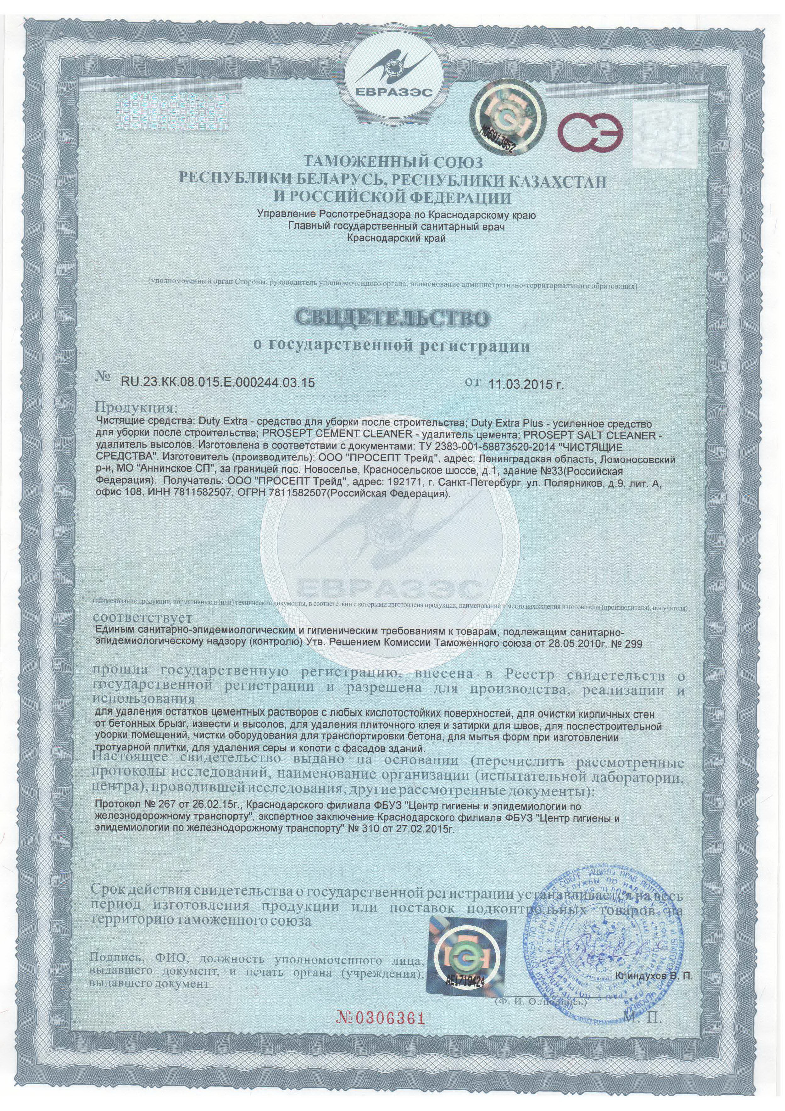 Крупные, старые остатки цементных растворов: использовать без разбавления.Цементный налет, раствор для затирки швов: развести водой в соотношении 1:2-1:5.Остатки извести, водоэмульсионных красок: развести водой в соотношении 1:5-1:10.Послестроительная уборка: развести водой и моющим средством в соотношении 1:10.