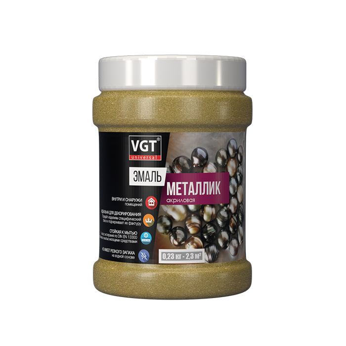 Эмаль VGT акриловая ВД-АК-1179 "МЕТАЛЛИК" золото 0,23кг (неморозостойкая)