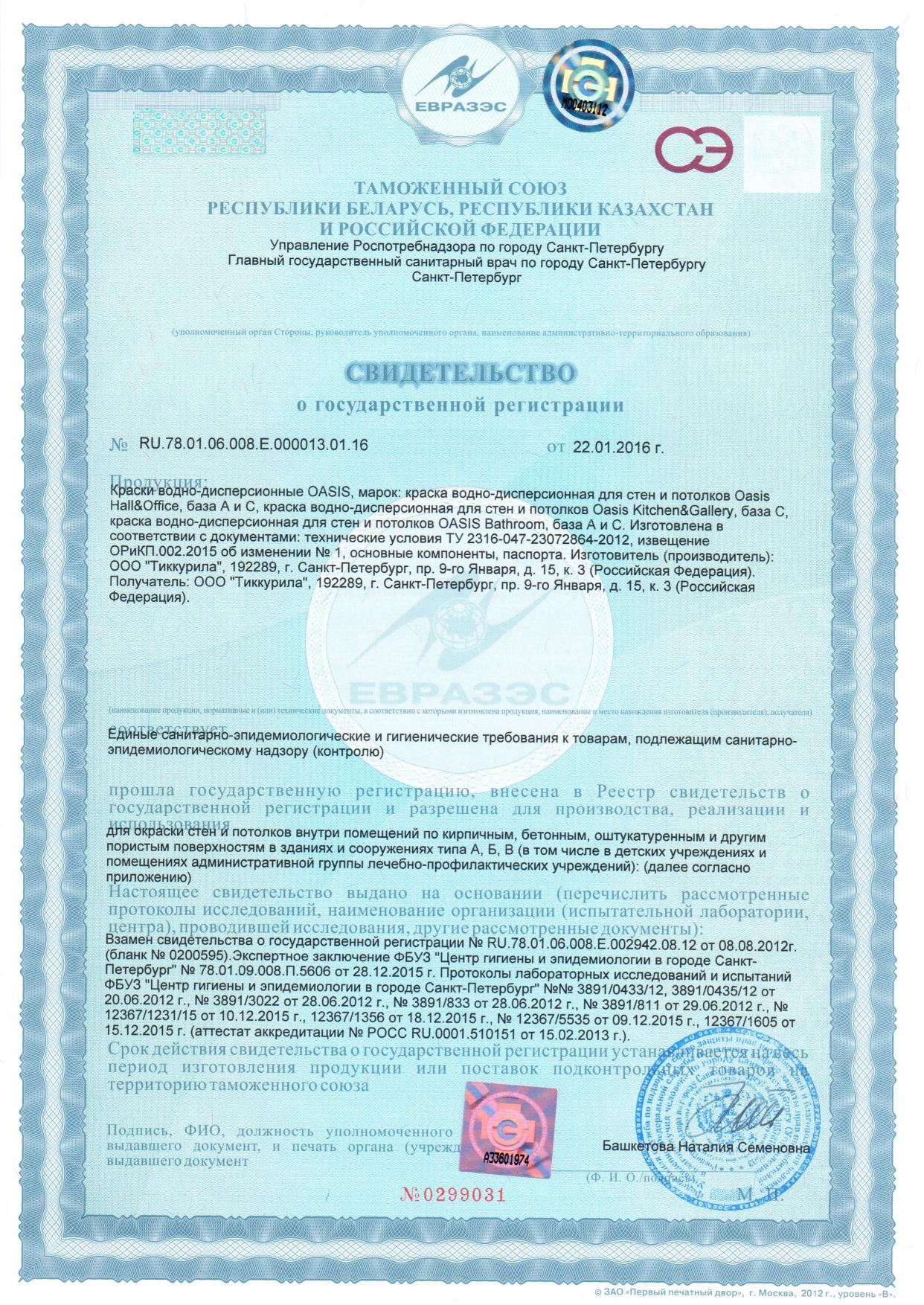 Краска Финколор OASIS HALL@OFFICE C для стен и потолков устойчивая к мытью 0,9 л