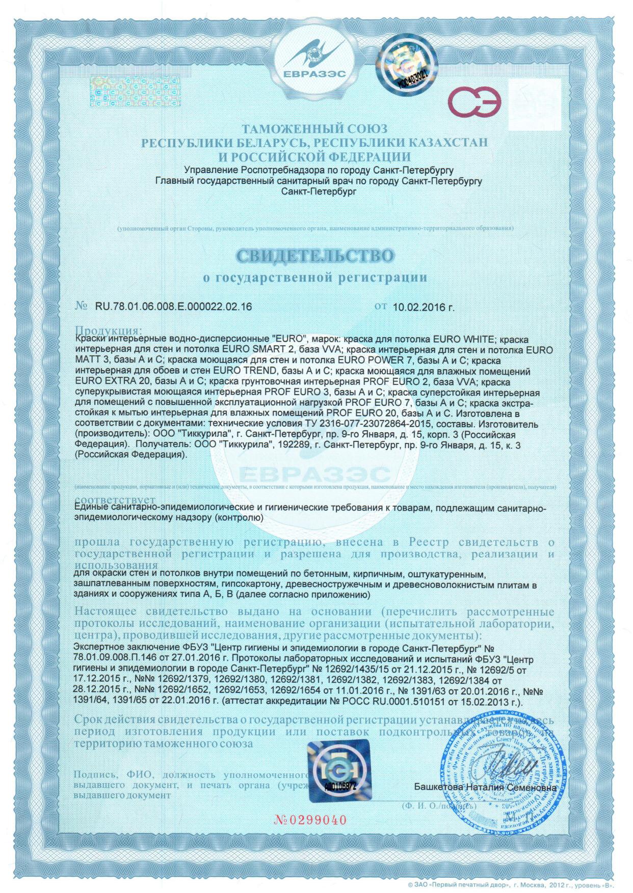 Краска Тиккурила ЕВРО 7 POWER А матовая интерьерная стойкая к мытью 2,7л