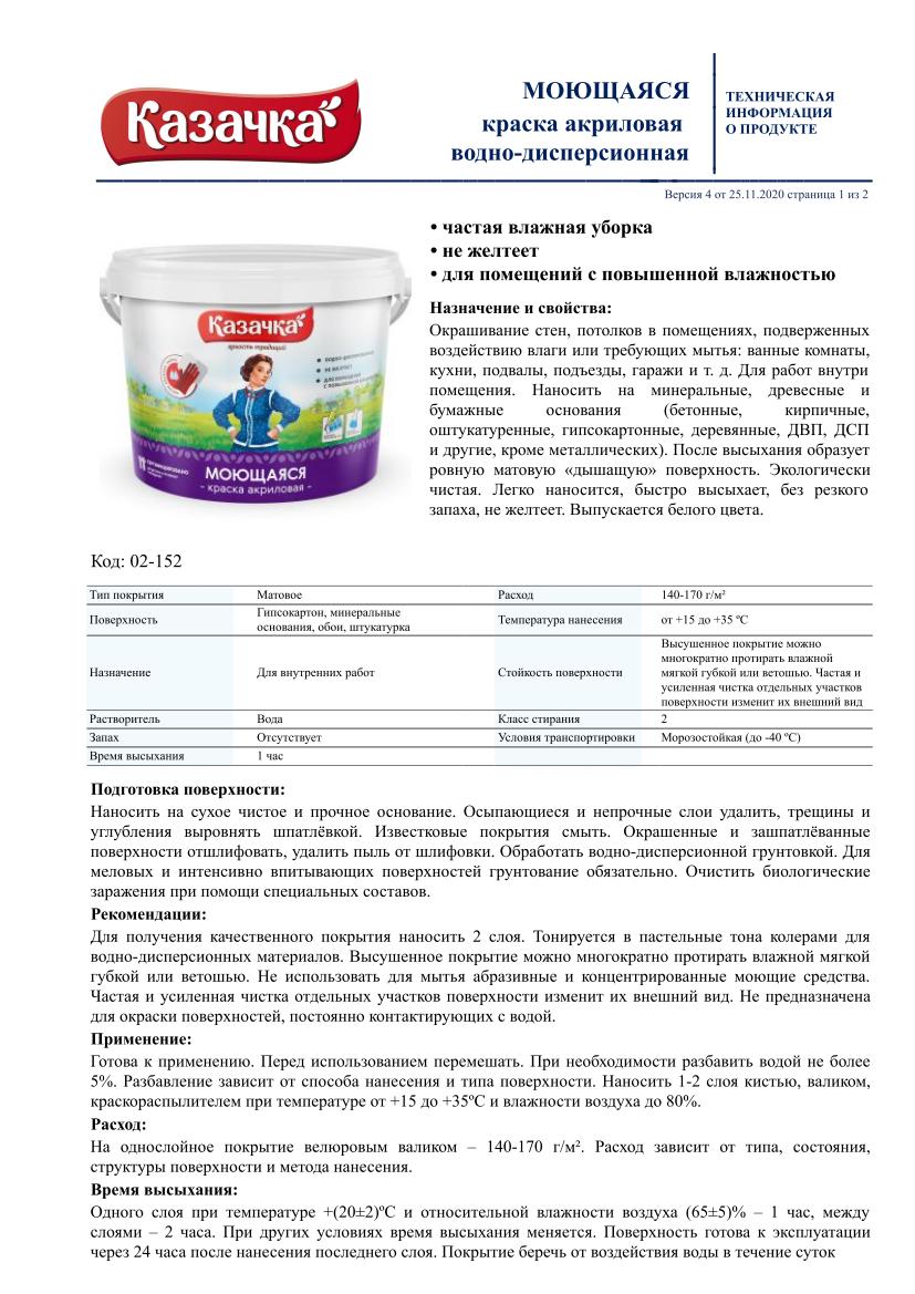 Краска КАЗАЧКА ВД-АК моющаяся (W4)13кг