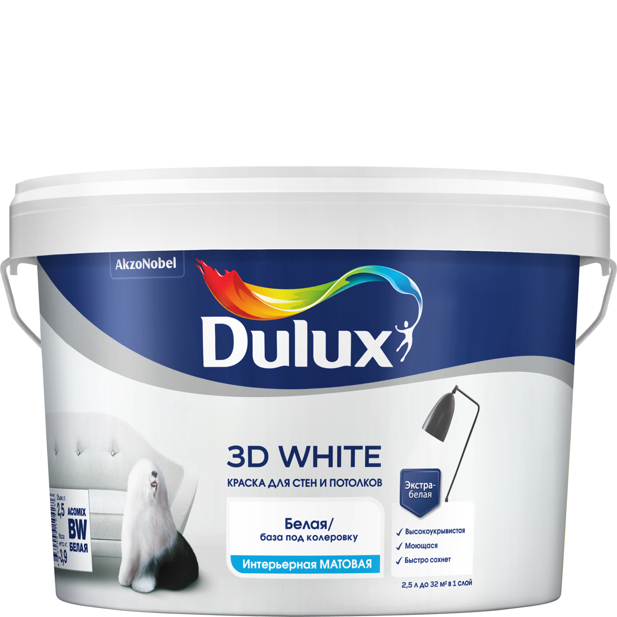 Краска ВД DULUX 3D White мат BW 2,5л