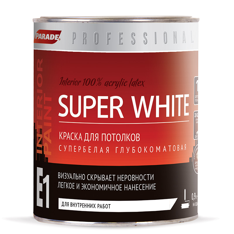 Краска PARADE SUPER WHITE E1 для потолков 0,9л