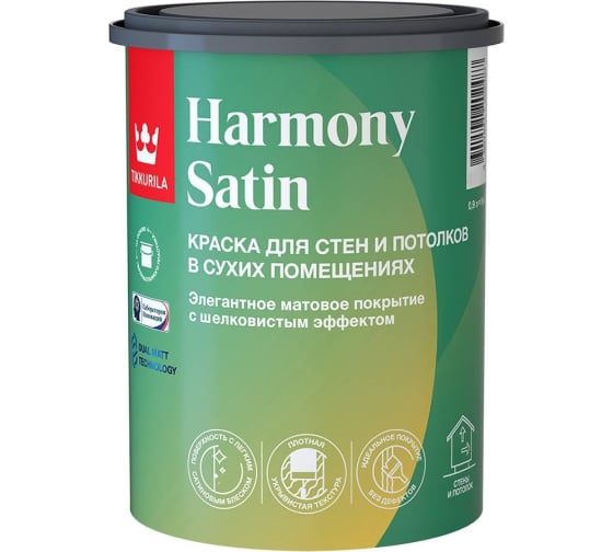 Краска Тиккурила HARMONY SATIN А для интерьеров шелковисто-матовая 0,9л