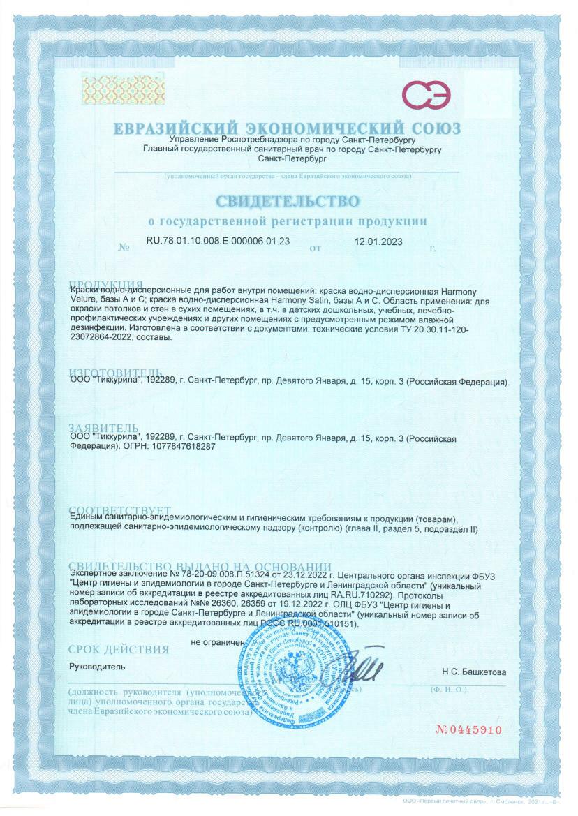 Краска Тиккурила HARMONY VELURE А для интерьеров глубокоматовая 9л