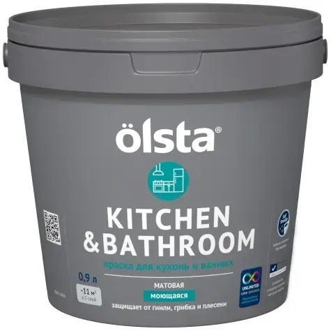Краска OLSTA KITCHEN&BATHROOM для кухонь и ванных матовая база А 0,9 л