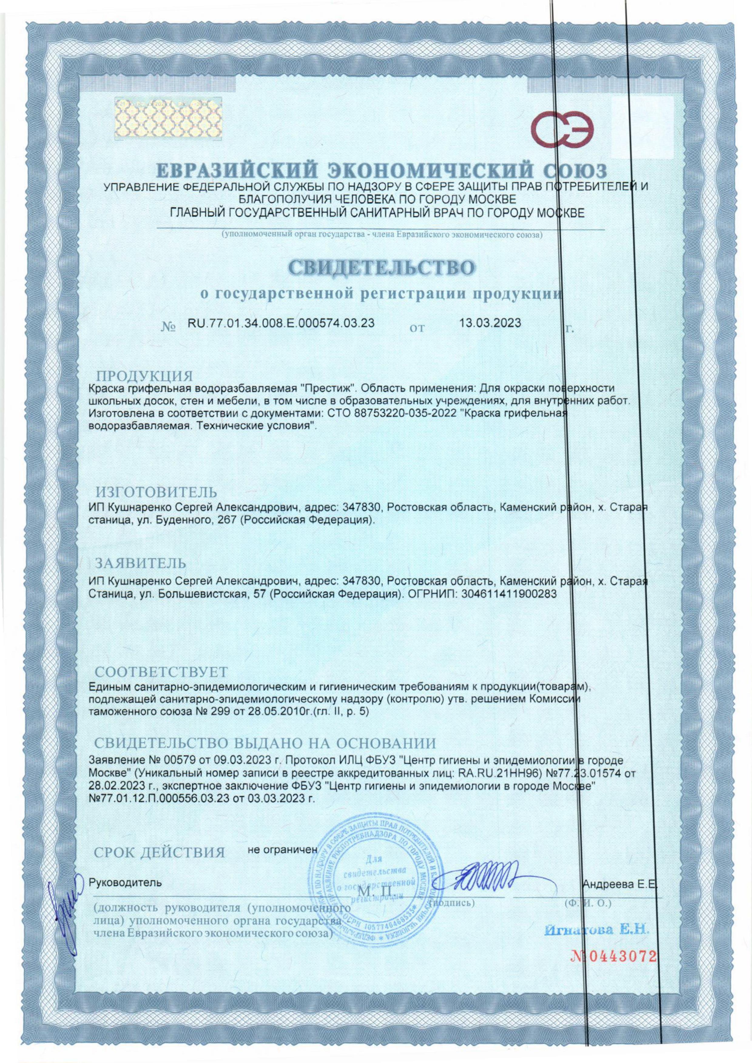 Краска ПРЕСТИЖ грифельная черная 0,9кг