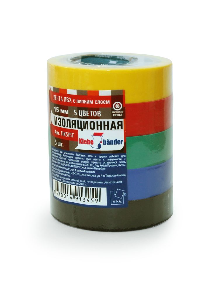Изолента ПВХ набор 15ммх10м Klebebander 5шт