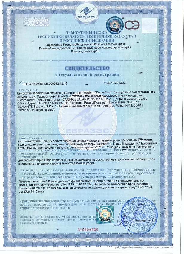 Область применения: герметизация головки автомобильных двигателей; герметизация холодильных, вентиляционных систем, систем отопления и кондиционирования воздуха; герметизация и соединения в двигателях, блоках питания, кулерах и мотопомпах; склеивание и герметизация в местах, подверженных воздействию высоких температур.