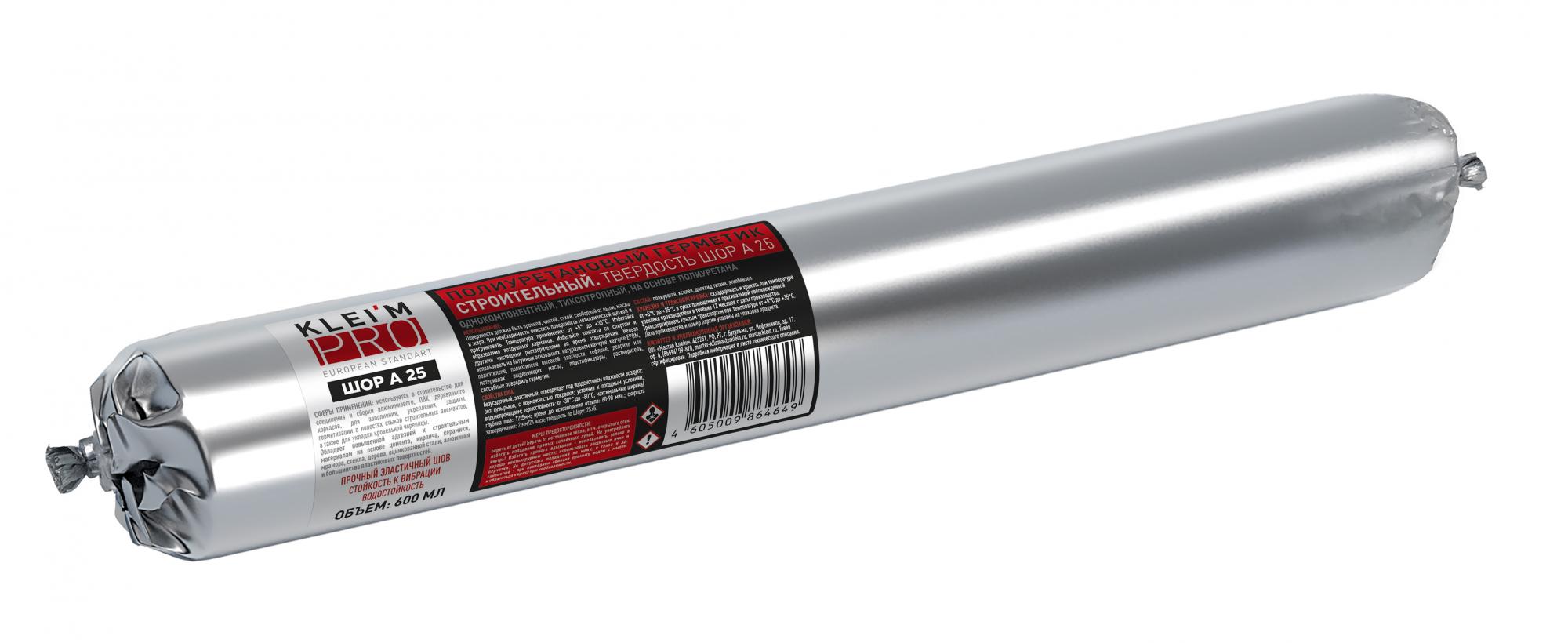 Герметик полиуретановый Kleim Pro однокомпонентный 25 шор, 600мл серый, файл-пакет