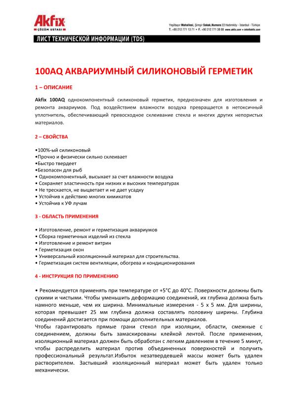 Akfix 100AQ Герметик аквариумный силиконовый 280мл Прозрачный