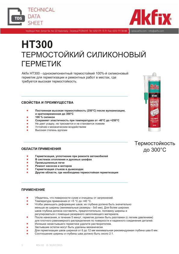 Термостойкость до +250 °C, кратковременно до 300 °C