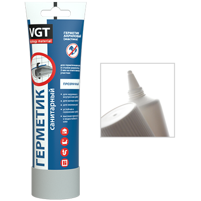 Герметик акриловый санитарный прозрачный 0,25кг туба с носиком VGT неморозостойкий