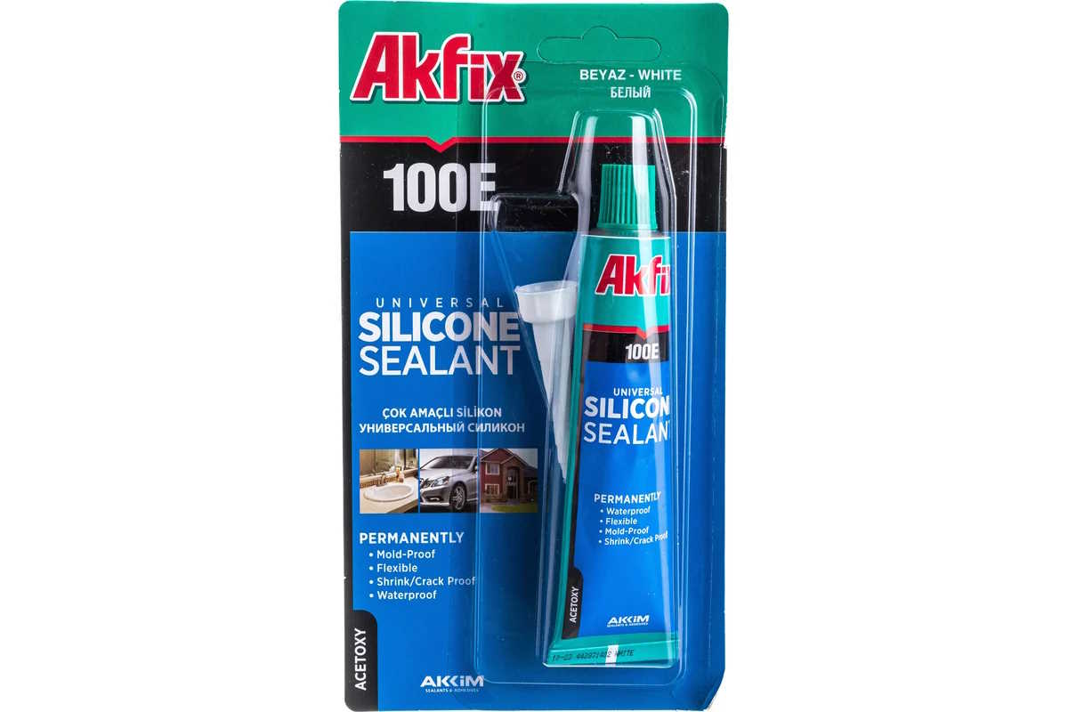 Akfix 100E Герметик универсальный силиконовый 50мл туба Белый